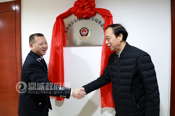 上午9点50分左右,在市、区公安局、高新区分局筹备组相关负责人见证下,李忠、杨易为常德市公安局高新区分局筹备组揭牌,并对筹备组的挂牌成立给予祝贺。