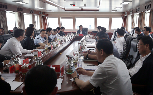 上午,许达哲带队从湘阴海事码头出发,乘船经湘江入资江,巡查了浩河口、南湖洲镇、西林港砂场和烂泥湖羊角堤段、资江一线大堤等地,实地查看河道管理、砂场整治、堤岸除险加固等工作。巡查中,许达哲还与一同参加巡查的14个市州河长座谈,听取各地河长制履责情况,并结合巡查情况,就蓄洪垸管理、“僵尸船”清理、水源地及敏感水域排污口清查整治、河道采砂治理、砂石码头整治、岸线保护、整治河道洪道占用等12项具体工作作出部署。陈文浩、戴道晋分别带队巡查了澧水、西洞庭湖和沅水情况,并现场交办9个突出问题,要求限期整改到位。