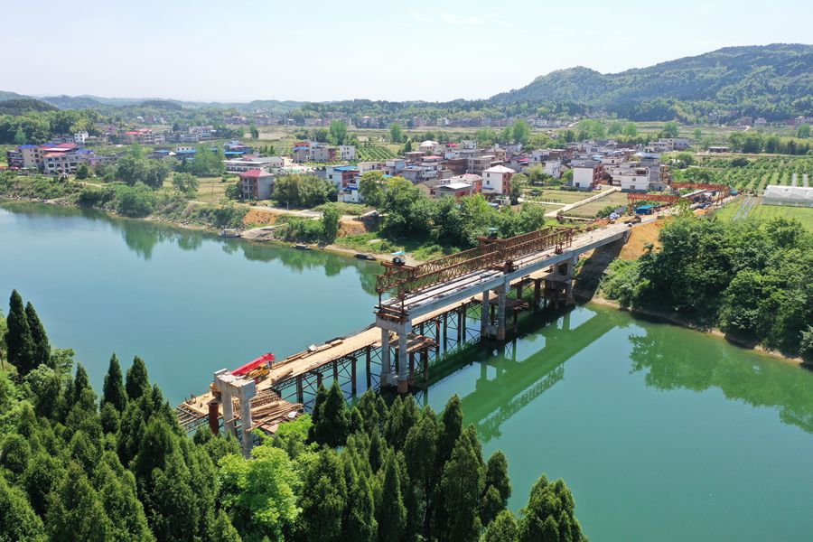 4月27日,隆回县三阁司镇中洲村,扶贫项目——赧水大桥正在加紧施工中。中洲村位于赧水上游,是一个四面环水的孤岛,受交通制约,全村产业发展落后。帮扶工作队驻村扶贫后,为该村争取到修建赧水大桥的扶贫项目,总投资1300余万元,预计今年6月建成。