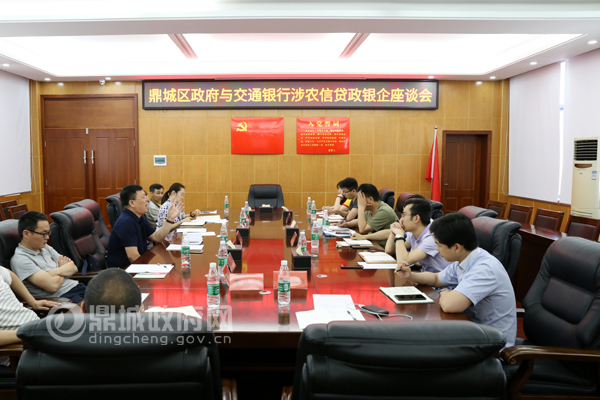 5月16日下午,鼎城区政府联合交通银行常德分行联合举办了涉农信贷政银企座谈会,鼎城区人民政府副区长王直华出席会议,区金融办、涉农科局、省农信保等单位相关负责人参加会议。