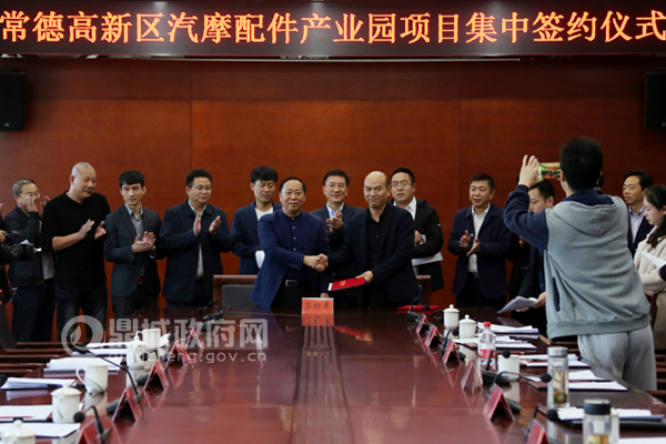 10月26日,常德高新区举行汽摩配件产业园项目签约仪式,鼎城区委副书记、区人民政府区长朱金平出席签约仪式并讲话。常德高新区管委会主任杨学平代表常德高新区分别与玉环欧旭机械有限公司、玉环源鑫机械制造厂、辽宁精锐机械制造有限公司、玉环玉通汽配厂、玉环科锐纺机配件有限公司负责人签约。区政府办、区住建局及常德高新区相关负责人参加签约仪式。