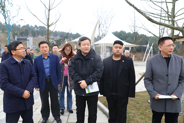 曹立军在三角堆村杜鹃湖文化广场听取相关情况汇报