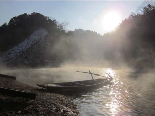 雪晴午后的两湖水体会因光照产生千形万幻的雾霭,游船驶动,或许你会发现远处的水面一层烟雾排成直线,犹如一艘汽艇快速驶过溅起的水花,或似一群奔马绝尘而去;或者刚刚看起来什么都没有的湖面,突然升起一层薄雾,直奔游船,包裹你的身体,钻进你的鼻里、肺里,突然间又消失殆尽,直让你生出不知今夕何夕,恍若羽化登仙的感觉。