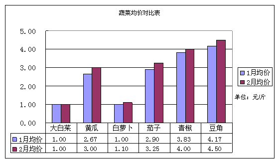 大白菜、黄瓜、白萝卜、茄子、青椒、豆角超市、集市混合均价每斤分别为1元、3元、1.1元、3.25元、4元、4.5元,大白菜、黄瓜、白萝卜、茄子、青椒、豆角同比分别上涨7.53%、6.01%、18.28%、6.21%、33.33%、22.95%;黄瓜、白萝卜、茄子、青椒、豆角环比分别上涨12.36%、10%、12.07%、4.44%、7.91%,大白菜环比持平。和上月相比,蔬菜价格总体上涨,由于今年较往年气温偏低,许多蔬菜储存难度加大,光照不足拉长生长周期,导致市场供应有所减少,从而推动蔬菜上涨。