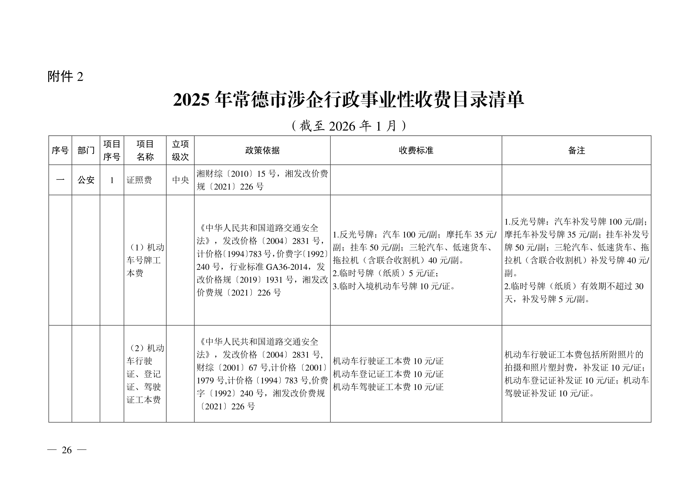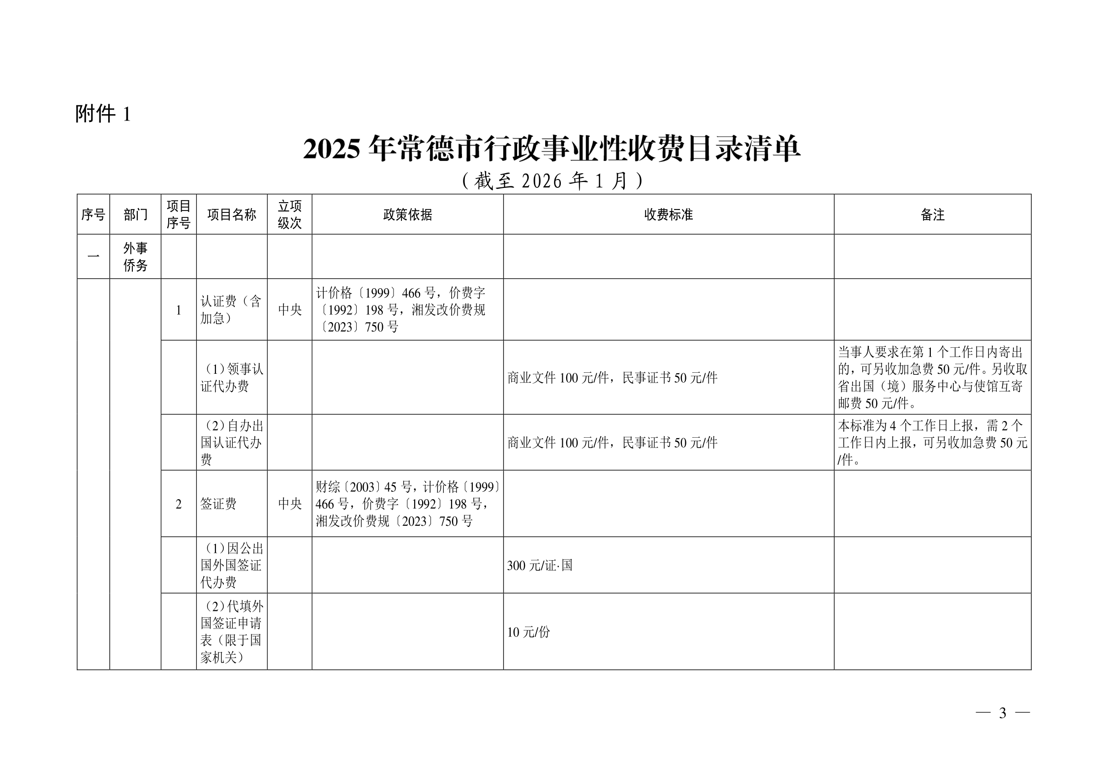 附件:关于发布常德市2025年版行政事业性收费和涉企行政事业性收费目录清单的公告